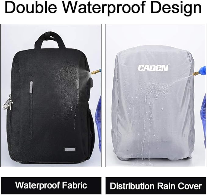 CADeN DSLR Camera Backpack Bag Waterproof Anti Theft with 15.6 inch Laptop Compartment, USB Charging Port, Tripod Holder, Rain Cover, Inner Case, Compatible for Sony Canon Nikon Olympus Black