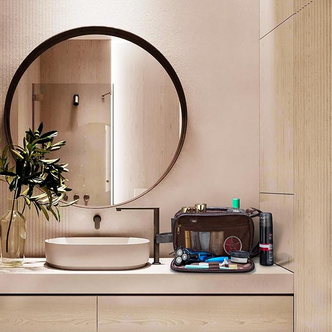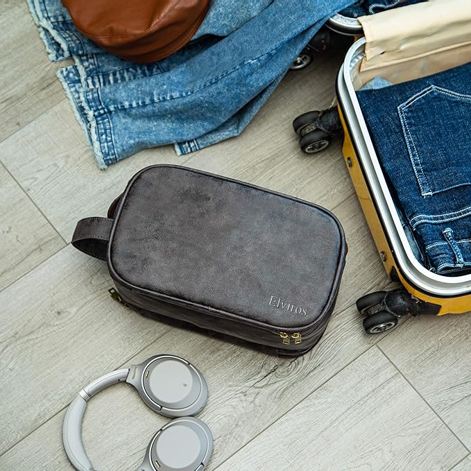 Elviros Toiletry Bag for Men, Large Travel Shaving Dopp Kit Water-resistant Bathroom Toiletries Organizer PU Leather Cosmetic Bags