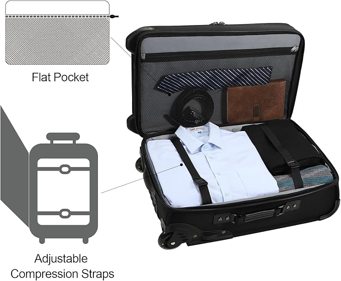 - Large Capacity Luggage Set: This rolling duffle bag with wheels has two outer compartments to store items that need quick access. Two interior layers provide ample storage for everyday essentials. The interior is designed with multiple pockets. Large enough space design of the suit case brings you a lot of convenience.
