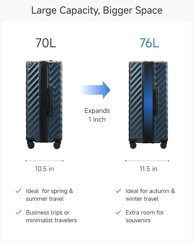- Versatile 15% More Packing Space: Unlock new possibilities with our expandable luggage, offering an additional 2 inches of packing space. Perfect for embracing the latest fashion trends while still having room for all your essentials.