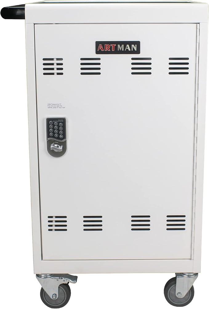 - 【MOVEABLE CHARGING CART】: Even fully loaded this charging and storage cart is quickly and easily transported from classroom to office with a robust handle for easy pushing or pulling.The cart also features four swivel casters and two locking brakes for easy maneuverability.