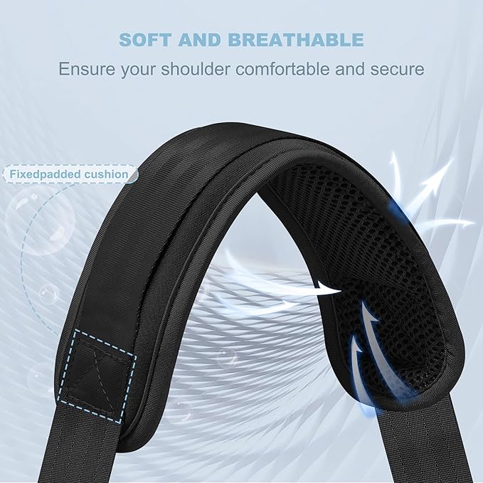 - Adjustable - The shoulder strap can be adjusted between 37 inch to 60 inch (95 cm to 152 cm) in length, 1.5 inch in width. Pad Length: 12.6 inch and Width: 2.8 inch. The easy adjustment in length allows for the perfect fit. suitable for people whose height is between 1.5 meters and 1.9 meters.