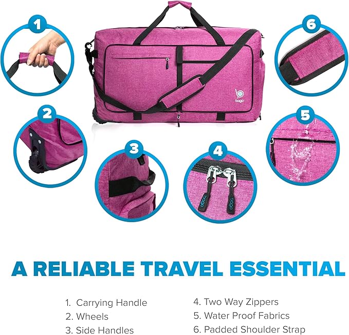 - Reliable Travel Essential: Use as a main rolling duffel bag luggage, an extra shopping bag, overnight or weekender bag, and more. Weighs 75% less than most large duffle bags! Comes in different colors too.