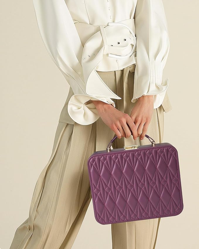 - PRETTY APPEARANCE - To make our jewelry organizer more design-friendly, we spent a long time using needlework to outline beautiful patterns on the surface of the jewelry box. We have installed handles on the travel jewelry box to make travel easier.