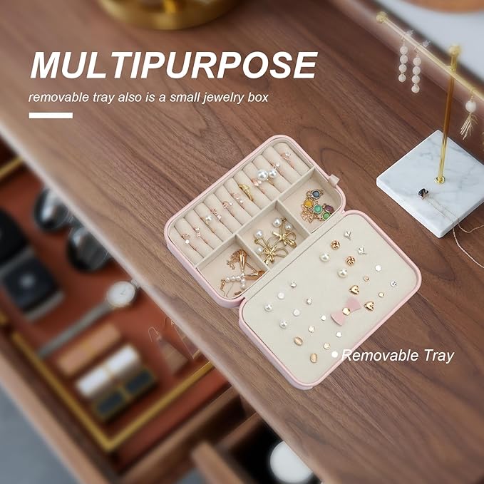 - INNER BOX - The inner box has a foldable design. You can take it out on its own and put it in your handbag when traveling. The inner box contains 6 small compartments including an earring board and a ring slot.