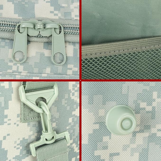 - Versatile Usage: Perfect for workout, rides, gym, yoga, beach, pool, hunting, hiking, camping, practice days or weekend trips and many outdoor activities. Over your shoulder, behind your back or by the bag's dual handles, this duffle bag could be served as a military duffle bag, Gym bag, sport bag, travel luggage, airplane carry on, camping luggage for men, women. It also can be used as a dirty laundry compartment at home.