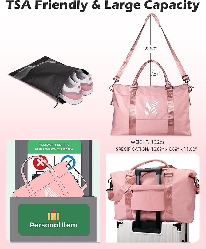 - Monogram Gift:Our women travel bags are made from high-quality polyester fabric, ensuring durability, waterproofness, and tear resistance. Your belongings will stay dry and protected, making it good for long-term use.Use it as airplane travel bag, luggage bag, sport bag, weekend bag, carry-on bag, beach bag, tote bag for women.