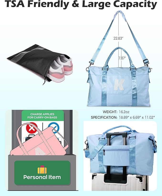 - Airplane Friendly Carry on Bag:This Initial weekend bag is designed to be the nice carry-on compliant bag for airline travel. It features an integrated trolley sleeve that slides over rolling luggage handles, making airport travel easy and convenient. The size of the bag with TSA Approved is 18.89"(length) x 11.02"(width) x 6.69"(height), making it suitable for carry-on luggage on an airplane.