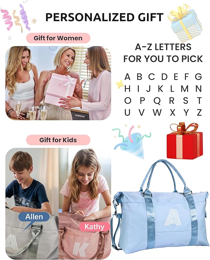 - Monogram Gift:Our women travel bags are made from high-quality polyester fabric, ensuring durability, waterproofness, and tear resistance. Your belongings will stay dry and protected, making it good for long-term use.Use it as airplane travel bag, luggage bag, sport bag, weekend bag, carry-on bag, beach bag, tote bag for women.