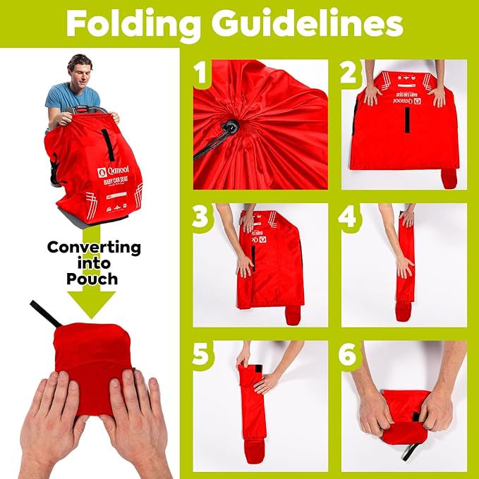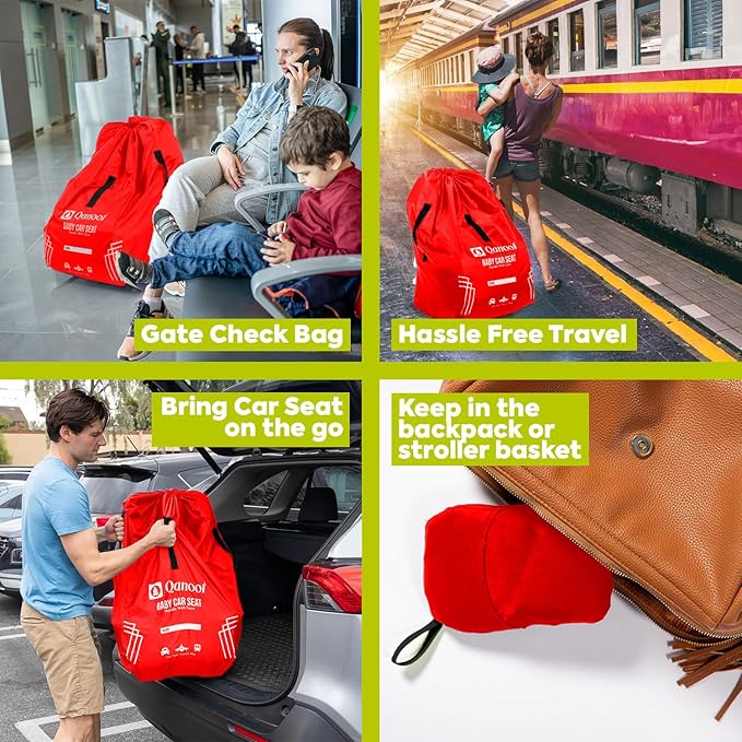 - [Easy to Carry]: The Car seat bags for air travel can be folded and wrapped quickly into the attached pouch. It can be kept in a stroller basket, diaper bag, backpack, or carry-on bag.
