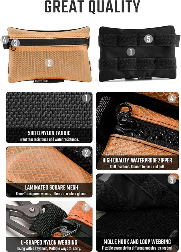 TACTICAL GEEK Storage A5 EDC Storage Pouch Set, Molle EDC Gadget Pouch, Multi-Functional Utility Small Tool Pocket for Daily Carry (Orange)