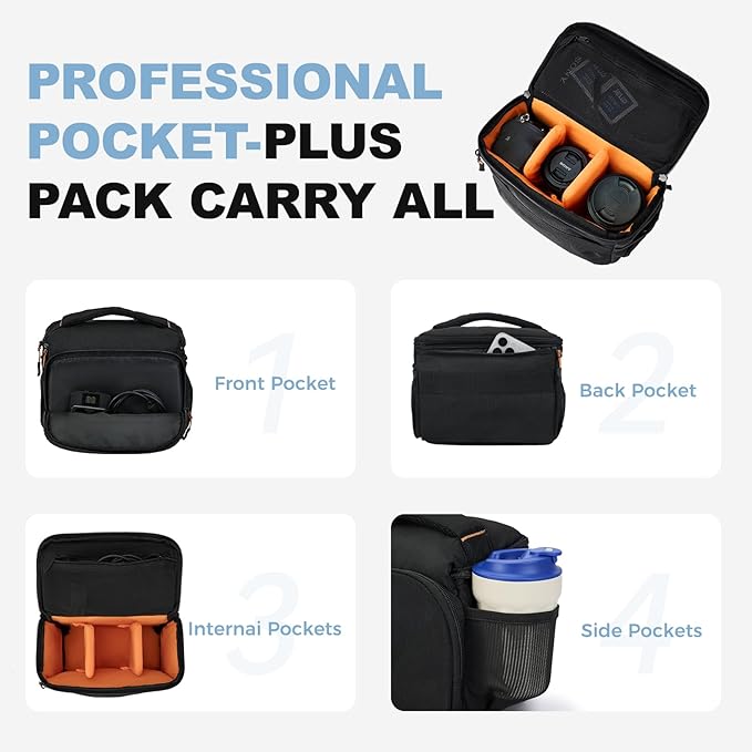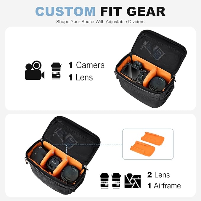 - Customizable Pro Storage: Adapt main compartment with 2 detachable padded dividers to securely fit: 1 camera body, 1-2 lenses, batteries, cards, cables & accessories. Everything organized & crush-proof.