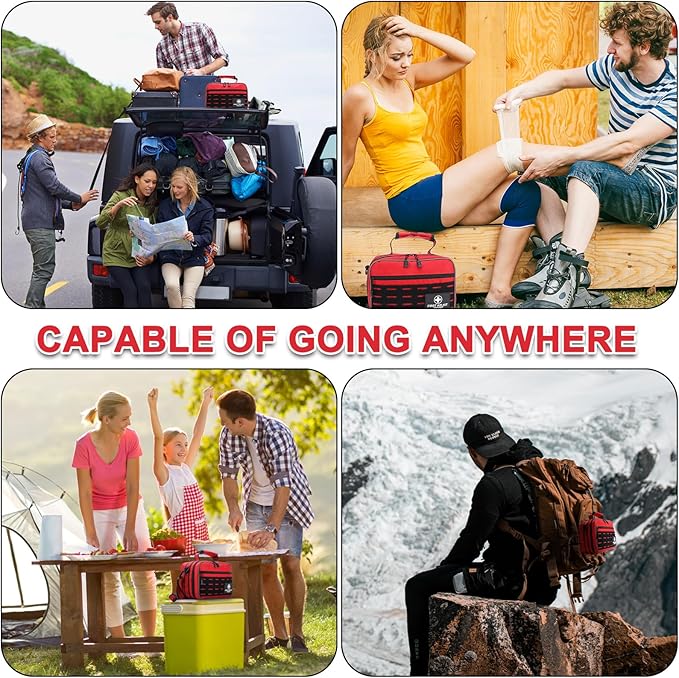 - DURABLE BAG - The first aid kit is made of 1680D polyester fiber that is tear-resistant and portable, and it also has a MOLLE system that can be used with shoulder straps and snap buckles. Also designed with handles on the top and sides, it can be mounted on cars, trucks, etc., making it convenient to carry. Equipped with reflective strips that reflect light in the dark, it is ideal for use as an emergency rescue item under adverse conditions