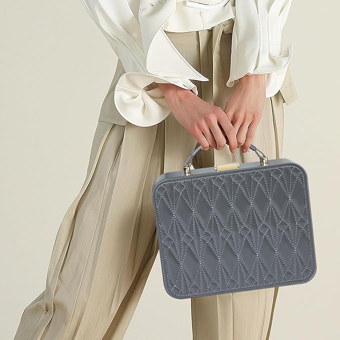 Travel Jewelry Case Large Jewelry Box Jewelry Travel Organizer Jewelry Case with Handle Removable Tray Best Gift for Women Girls (Grey)