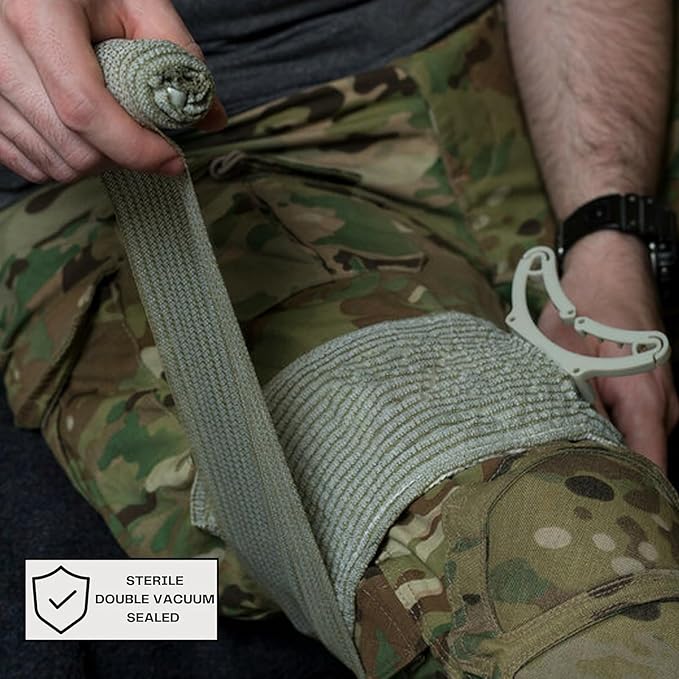 IFAK Trauma First Aid Kit, Hemostatic Gauze to Control Severe Bleeding, 6” Israel Compression Bandages, Emergency Wound Closures Adhesive Bandages, Deep Green (Black)