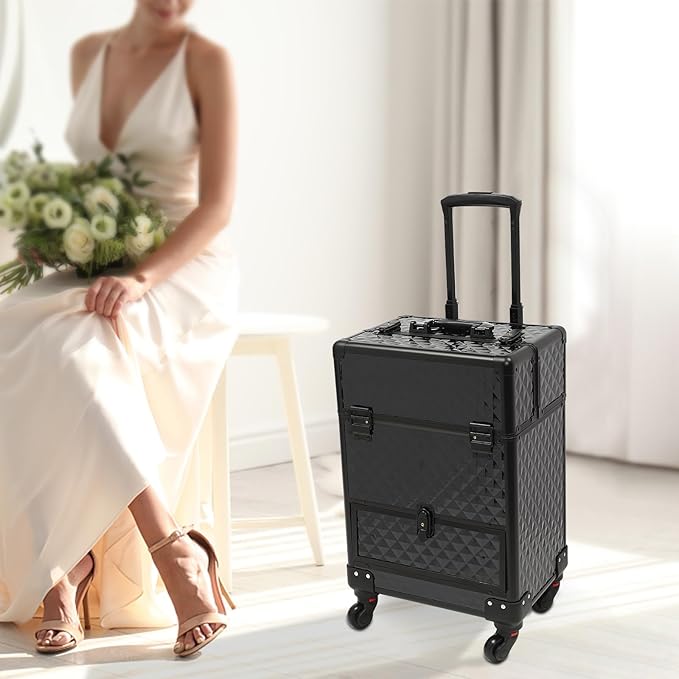 - This rolling makeup train case can be widely used by hair stylists, pet groomers, makeup artists, and so on for storing scissors, makeup, jewelry, combs, and other items. In addition, it is also very suitable for you to store tools or daily necessities when you go out.