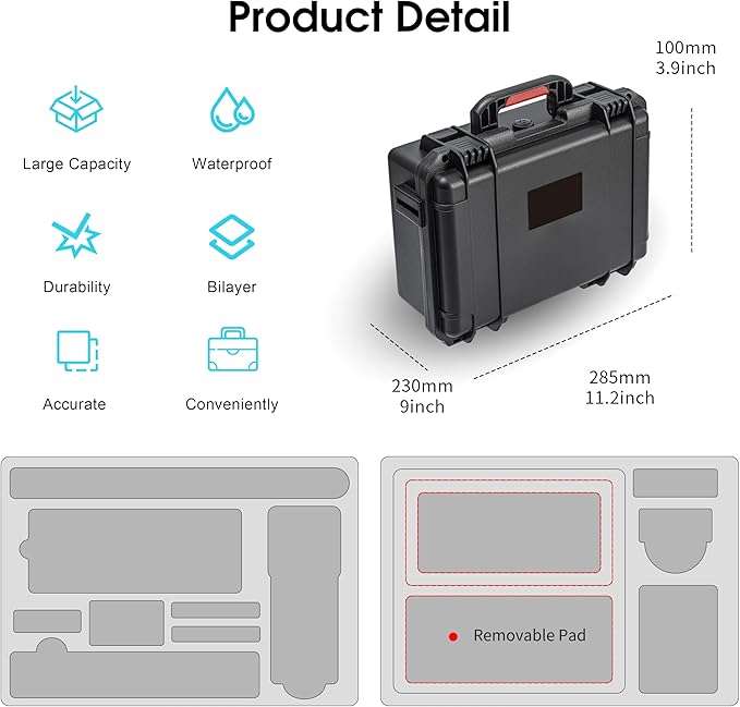 - Portable & Lightweight: the fit compact organizer case (11.1×9.05×3.93in, 2.17lbs) features an ergonomic handle for easy carrying or backpack storage. The ideal travel companion for Insta360 X5 camera. Notice: Case Only, Not Include Camera and Accessories.