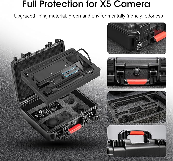 - Customized Design: This premium carrying case is expertly crafted with a custom dual layer interior, offering superior protection and generous storage space for Insta360 X5 camera and accessories. Keep all your essential gear organized and secure in one convenient, high quality solution.