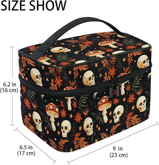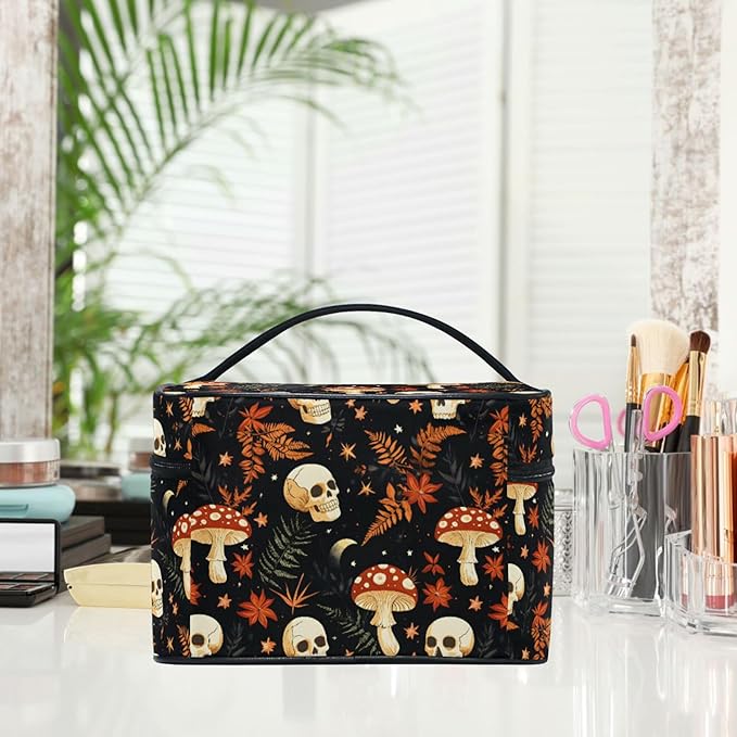 MNSRUU Makeup Bags, Mushrooms Skull Makeup Organizer Bags Toiletry Bag Box Travel Cosmetic Bag Make Up Train Case for Women Teen Girl Ladies