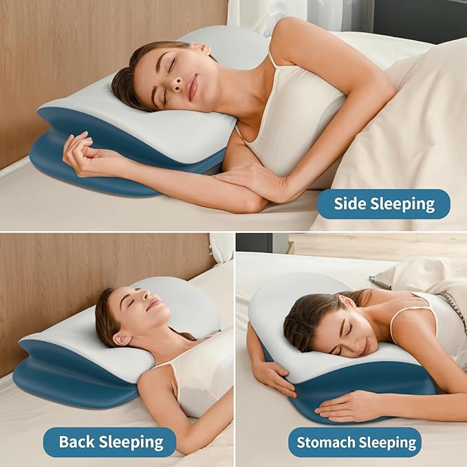 - [Stay Comfortable with Breathable Fabric]: Tired of waking up sweaty and uncomfortable? Our pillow for sleeping features a breathable fabric that keeps you fresh and dry all night. Additionally, our cervical pillow offers flexibility with two different heights to choose from: one side is 4.33 inches, and the other side is 3.54 inches, allowing you to customize your sleeping experience for maximum comfort and support.