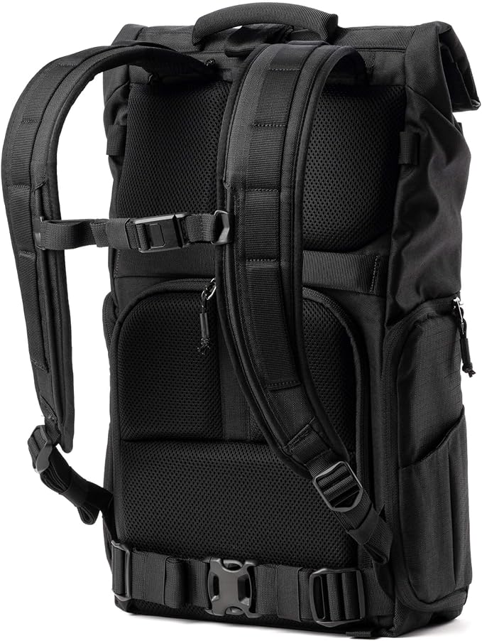 Think Tank FocusPoint 30L RollTop Camera Backpack - Asphalt Black: Expandable Travel & Camera Backpack with Laptop Sleeve, Quick Side and Back Access, Rain Cover – Versatile Photography & Travel Bag