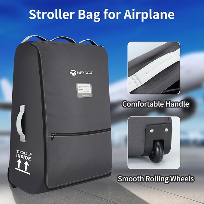 Stroller Bag for Airplane, Stroller Travel Bag Compatible with UPPAbaby Vista, Vista V2, Cruz V2, Rolling Wheel Bag with Storage Pocket, Multiple Handles, Luggage Tag for Flight Travel, Grey