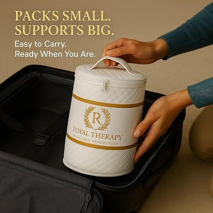 Royal Therapy Travel Memory Foam Pillow 2-Pack, Neck Pillow Bamboo Adjustable Side Sleeper Pillow