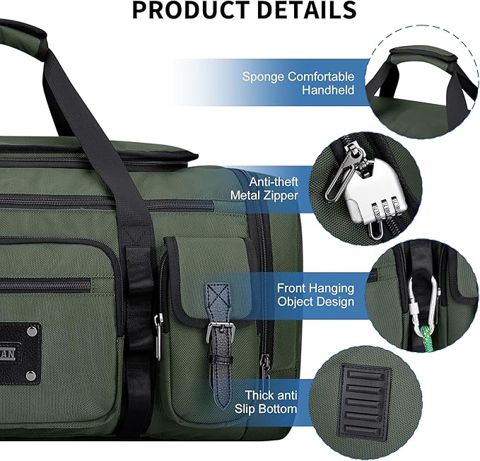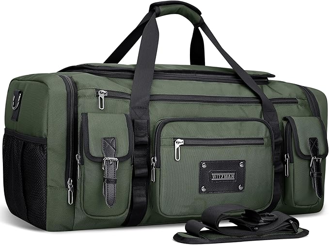 WITZMAN Duffle Bag for Men Large Carry On Weekender Bag 54L Nylon Duffle Gym Bags for Travel with Shoes Compartment(B717 Army Green)