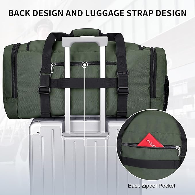 - Versatile & Comfortable Carrying: Designed for flexibility, this duffel bag functions as a carry-on handbag or a comfortable single shoulder bag. It features an adjustable, detachable padded shoulder strap and pressure-relieving foam-padded handles for comfort. The back luggage sleeve allows it to securely slide over your suitcase handle, enabling easy transport through airports and beyond.