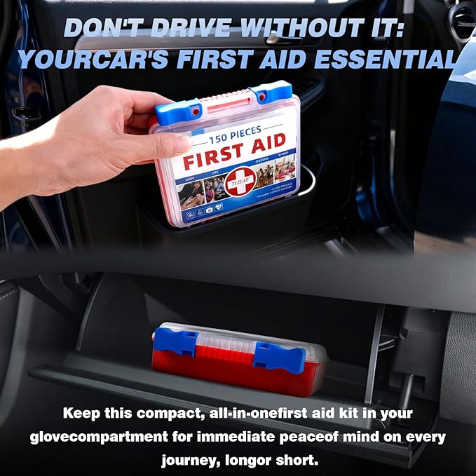 Mini First Aid Kit - 150 Pieces Emergency Medical Kit for Home, Car, Travel, Camping, Truck, Hiking, Sports, Office, Vehicle & Outdoor Emergencies
