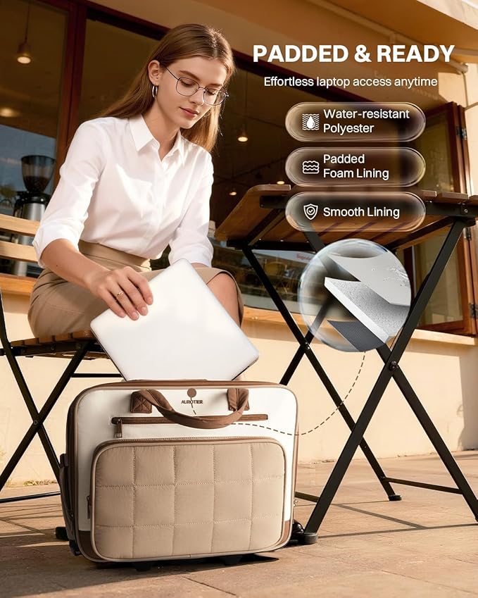 - 【Padded 16" Laptop Compartment & Accessory Organization】Safely fits laptops up to 16", tablets, and other electronics with thick protective padding. This rolling briefcase for women for work also features an accessory pocket with pen holders and extra slots to keep chargers, cables, and small devices neatly organized and easy to access. Your tech stays secure, scratch-free, and ready for work or travel
